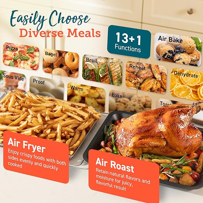 - ππ π ππππππππ: Airfry, Air Bake, Air Roast, Air Sous Vide, Bagel, Toast, Pizza, Proof, Broil, Dehydrate, Reheat, Bake, Warm. Prepare a wide range of dishes effortlessly