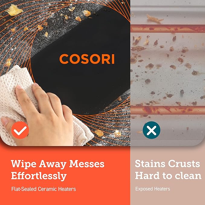- ππππ πππππ & πππππ π πππππ πππππ: 3 Flat-sealed ceramic heating elements, Top, bottom, and back, not only cook food quickly and evenly, you can keep the oven clean at all times by simply easy wiping after each use