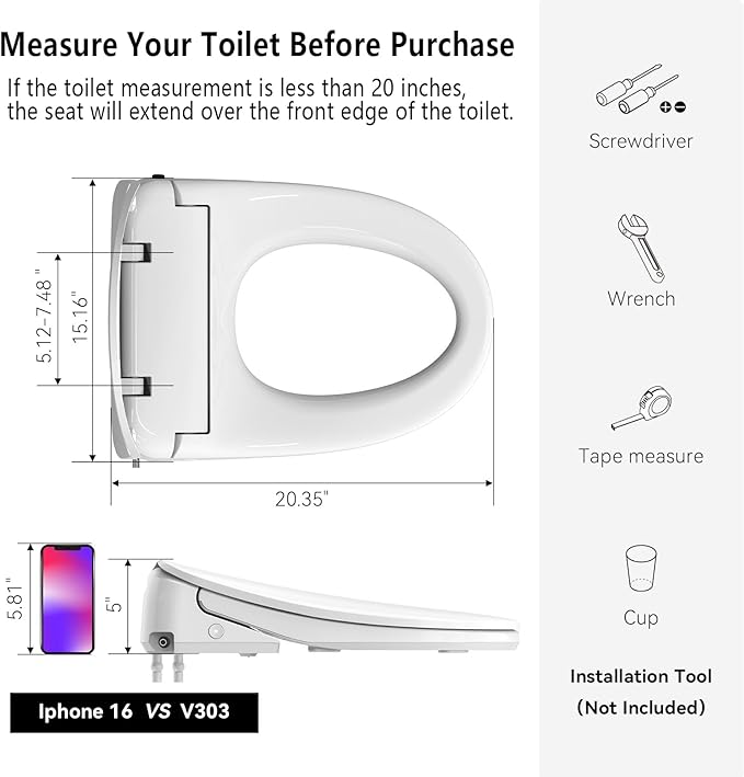 - Fits Elongated Toilets: The toilet length should be between 18" and 20".
