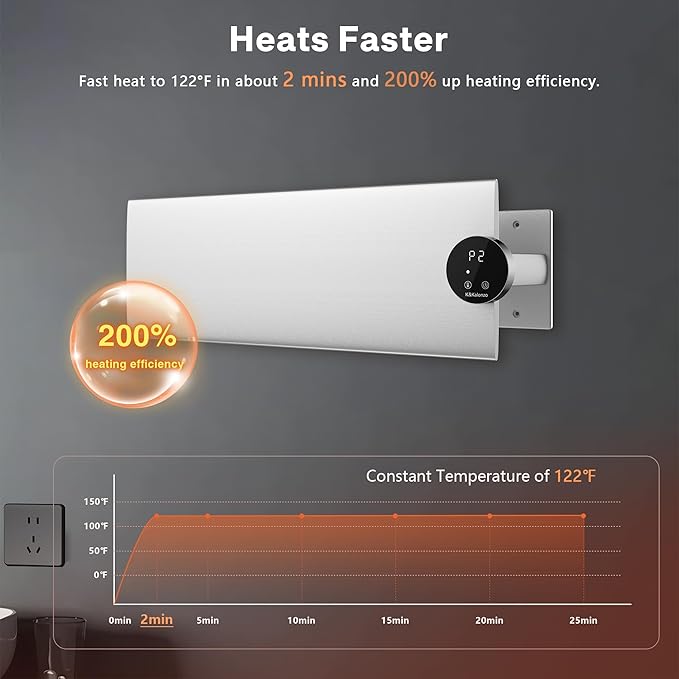 - [Rapid Heating Technology]: Reaches your desired temperature in just 1-3 minutes! The heated towel rack heats up to 122°F in around 2 minutes, and 140°F in around 3 minutes. Designed for energy efficiency, it features a power of 85W at 1 bar, 140W at 2 bars, 210W at 3 bars, and 280W at 4 bars. Anti-scalding panels ensure safe handling, even at high temperatures