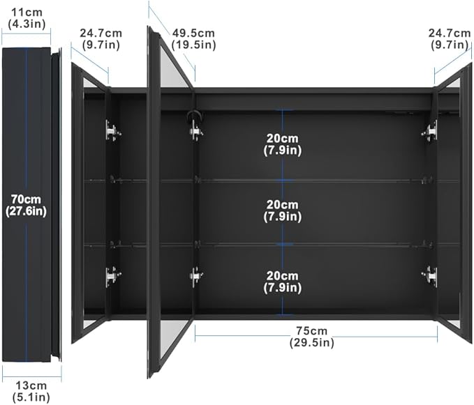 - [Strong Package & Easy to Install] Our mirror cabinet is wrapped with a strengthened package to better protect the LED mirror and cabinet body. It’s easy to install with the instructions. If there are any further questions, please feel free to contact us on Amazon.