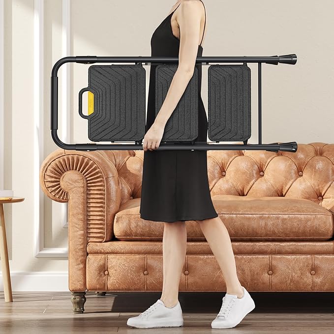 - Compact and Portable Design: The ladder folds down to a slim profile, allowing for easy storage in tight spaces such as closets or under beds, and its lightweight construction enables effortless transportation with one hand