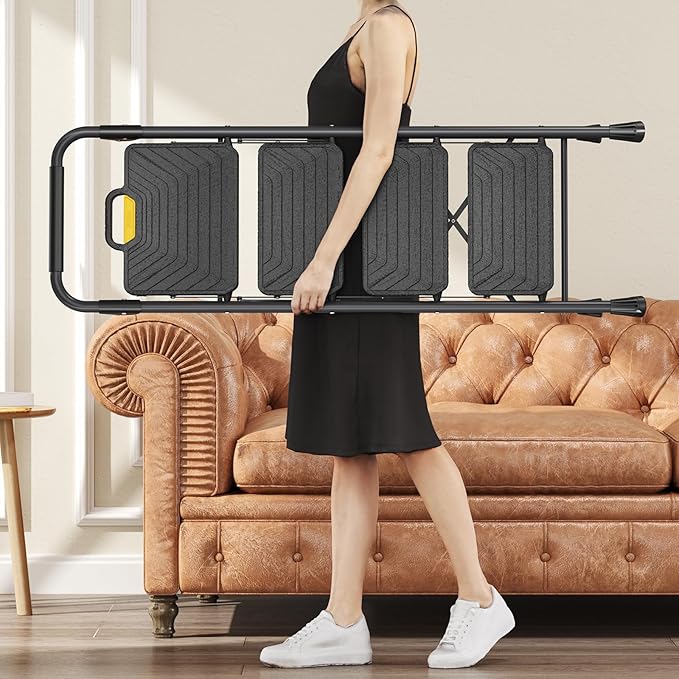 - Compact and Portable Design: The ladder folds down to a slim profile, allowing for easy storage in tight spaces such as closets or under beds, and its lightweight construction enables effortless transportation with one hand