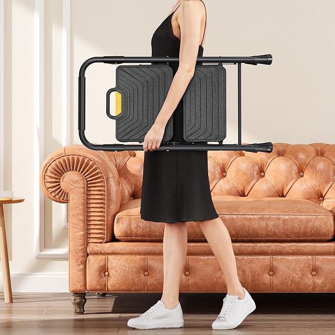 - Compact and Portable Design: The ladder folds down to a slim profile, allowing for easy storage in tight spaces such as closets or under beds, and its lightweight construction enables effortless transportation with one hand