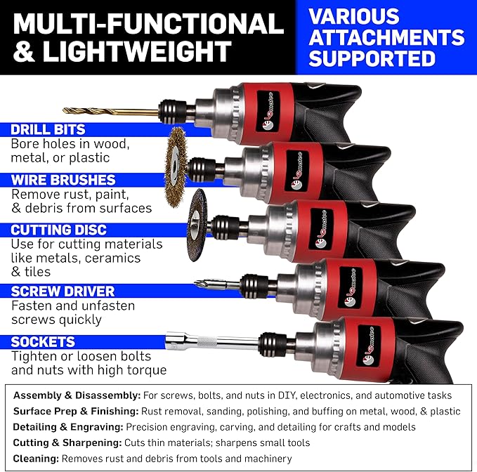 - Power Source : Air Compressor Powered