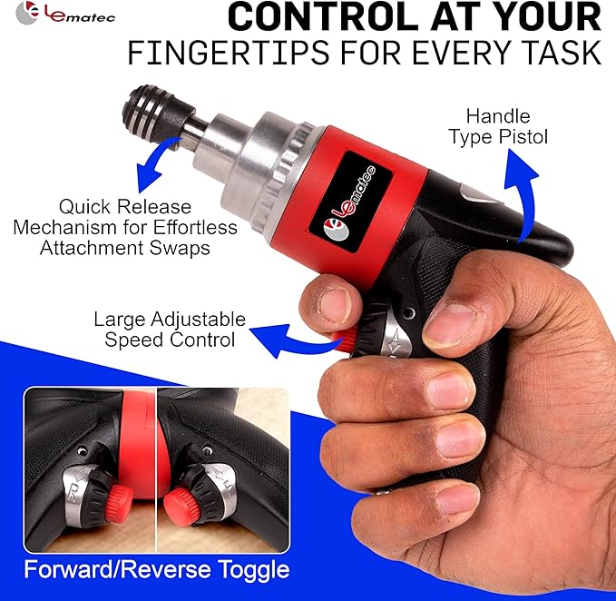 LE LEMATEC Professional Air Impact Driver - 13000 RPM Pneumatic Wrench with Twin Hammer, 40 ft-lbs Torque, 1/4" NPT Compact Tool for Automotive, Furniture & Woodworking (LE-ID413)