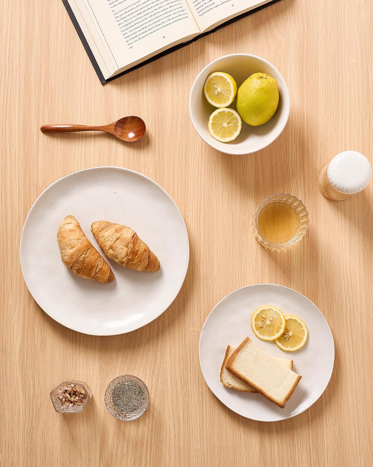 Famiware Dinnerware Sets for 6, Ocean Round 18-Piece Kitchen Plates and Bowls Sets, Microwave and Dishwasher Safe, Scratch Resistant, Matte White