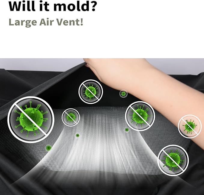 - HUMANIZED DESIGNS-Durable fabric handles were set in the most convenient position for easy putting on or taking off; It can also be used for suspension and storage; Well-made structured air vent stay open to reduce inside condensation and prevent wind lofting