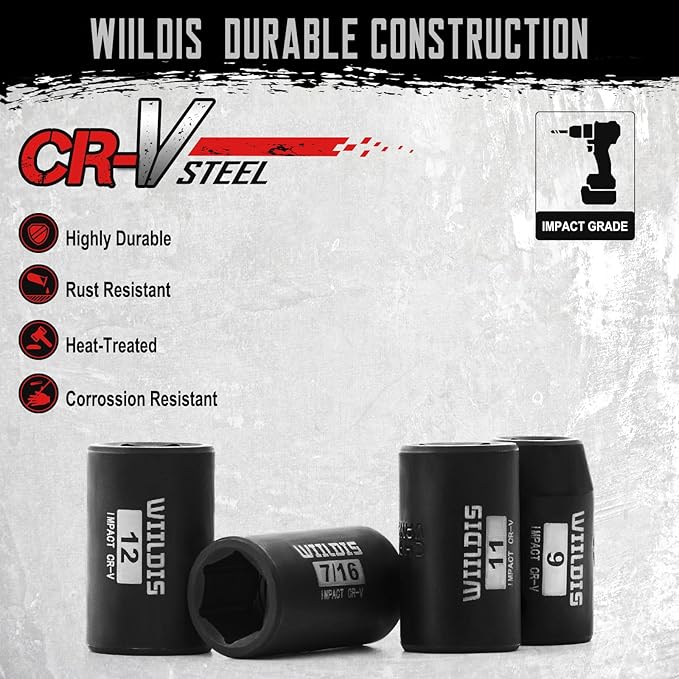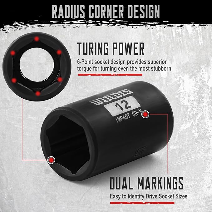 - Superior CR-V Steel: The impact socket set 3/8 drivemade of CR-V material, which ensures superior hardness that can withstand extreme levels of torque changes.High-contrast size marking is permanently laser etched