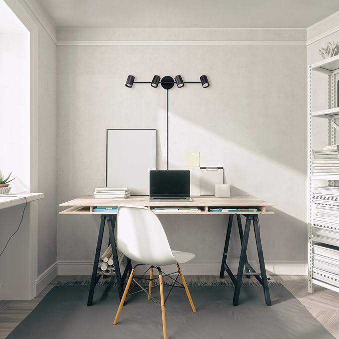 - MODERN INDUSTRIAL: the chic design of this 4-Light Plug-In Track Light showcases a simple yet functional style that offers unique lighting to illuminate your home with trendy modern industrial flair