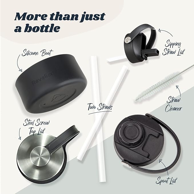 - INSULATED SPORTS WATER BOTTLE: Our double wall vacuum insulation makes your Revelist water bottle sweat free while keeping your drinks COLD for up to 24 hours and HOT for up to 12 hours!