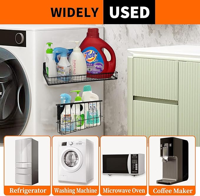 Bruda 2 Pack Magnetic Storage Rack for Spice, Magnetic Organization Shelf for Refrigerator, Fridge, Washing Machine, Oven, Coffee Maker, Metal Peg Board, Stacked Washer and Dryer 010