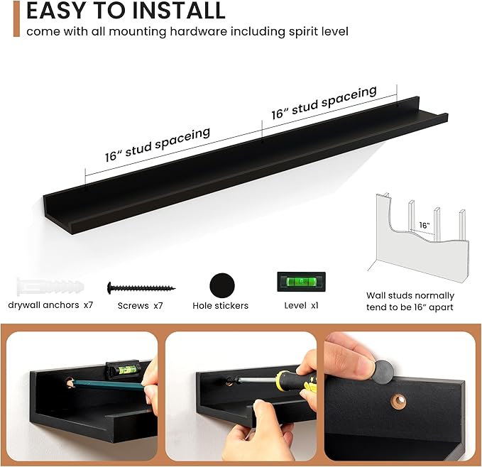 - Effortless Installation: Each shelf comes with pre-drilled holes and all necessary hardware, making installation quick and easy, so you can enjoy your new decor in no time.