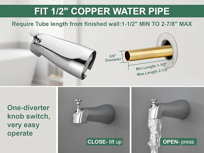 - 【1/2" NPT Standard Threads】 US.Standard 1/2" NPT tapered threads, ensuring for easy and fast installation; You can change water spray direction or pull out the shower wand to get a wonderful shower with this tub shower faucet set