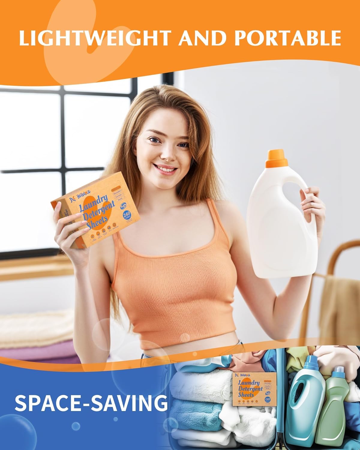Laundry Detergent Sheets - 240 Loads, Hypoallergenic,Deep Cleaning, Fresh Linen Scent, Plastic-Free, Eco-Conscious,Paraben-Free,Fast Dissolve, Perfect for Home,Dorms,Travel,Camping,College Essentials