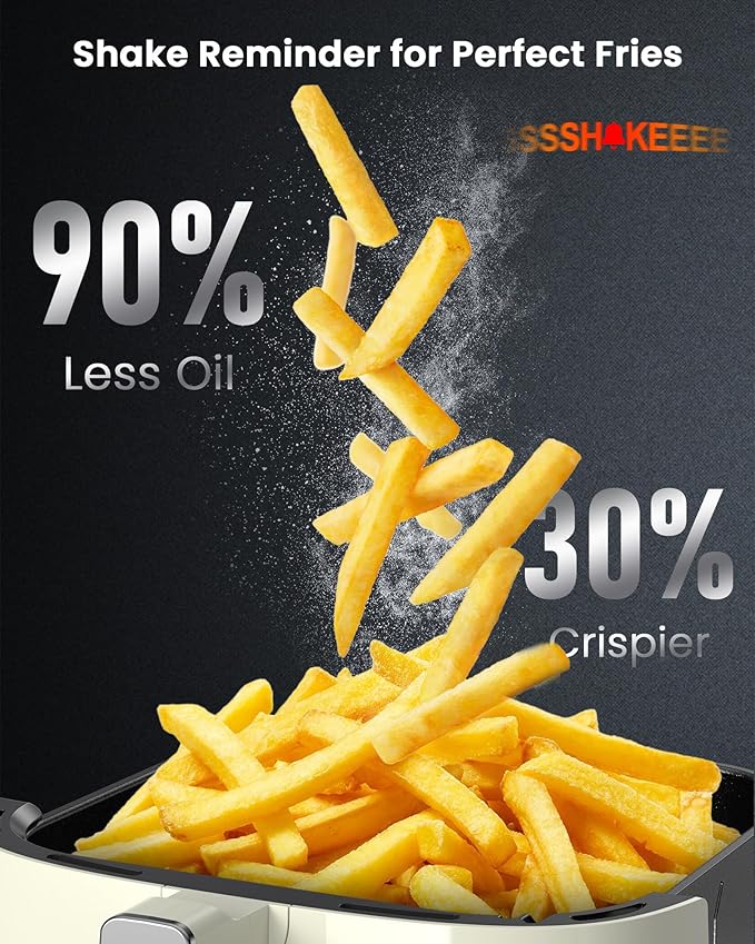 Nuwave Brio Plus Air Fryer 8 Qt, New & Improved, PFAS-FREE, 7 Digital One-Touch Cook Functions that AIR FRY, BAKE, ROAST, DEHYDRATE, TOAST, REHEAT, PREHEAT, 150 Presets, 50°F~400°F (Cream)