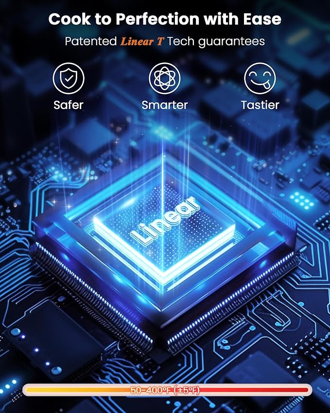 - AUTO SHUTOFF & LINEAR T TECHNOLOGY: Precisely adjust cooking temps from 50°F to 400°F anytime, with auto-shutoff for safety. Patented Linear Tech guarantees perfect results by monitoring and adjusting power, every dish is cooked to perfection every time.
