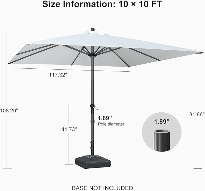 - Package includes 1 X umbrella, while base and furniture are NOT included