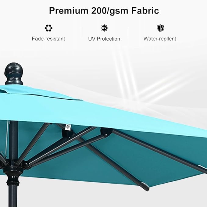 - Premium Fabric: 200/gsm premium polyester umbrella fabric ensures UV protection and water resistance, sustaining color vibrancy under extreme weather conditions, and achieves AATCC level 4 colorfastness.