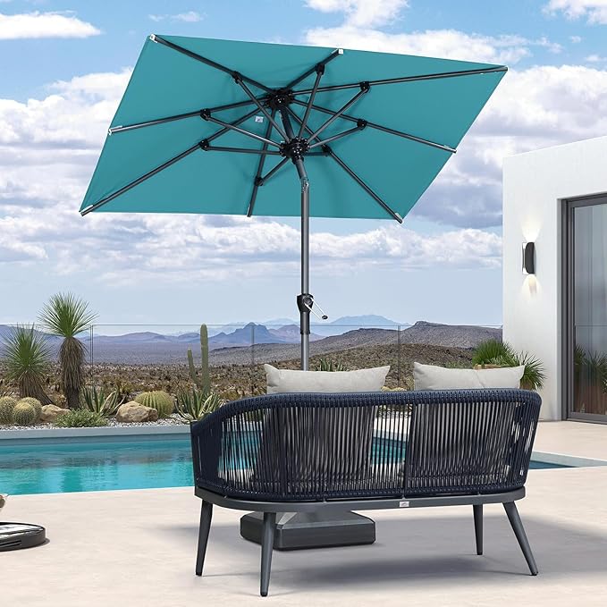 PURPLE LEAF 6' x 4' Rectangular Patio Umbrella Outdoor Table Umbrella Aluminum Frame Market Umbrella Sun Umbrella with 8 Sturdy Ribs Tilt for Garden Deck Lawn Pool Turquoise Blue