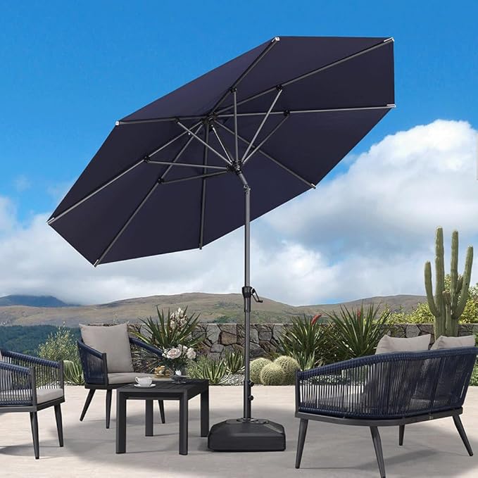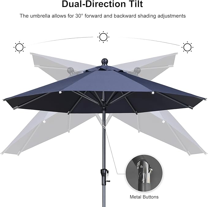 PURPLE LEAF 10' Round Patio Umbrella Outdoor Table Umbrella Aluminum Frame Market Umbrella Sun Umbrella with 8 Sturdy Ribs Tilt for Garden Deck Lawn Pool Navy Blue