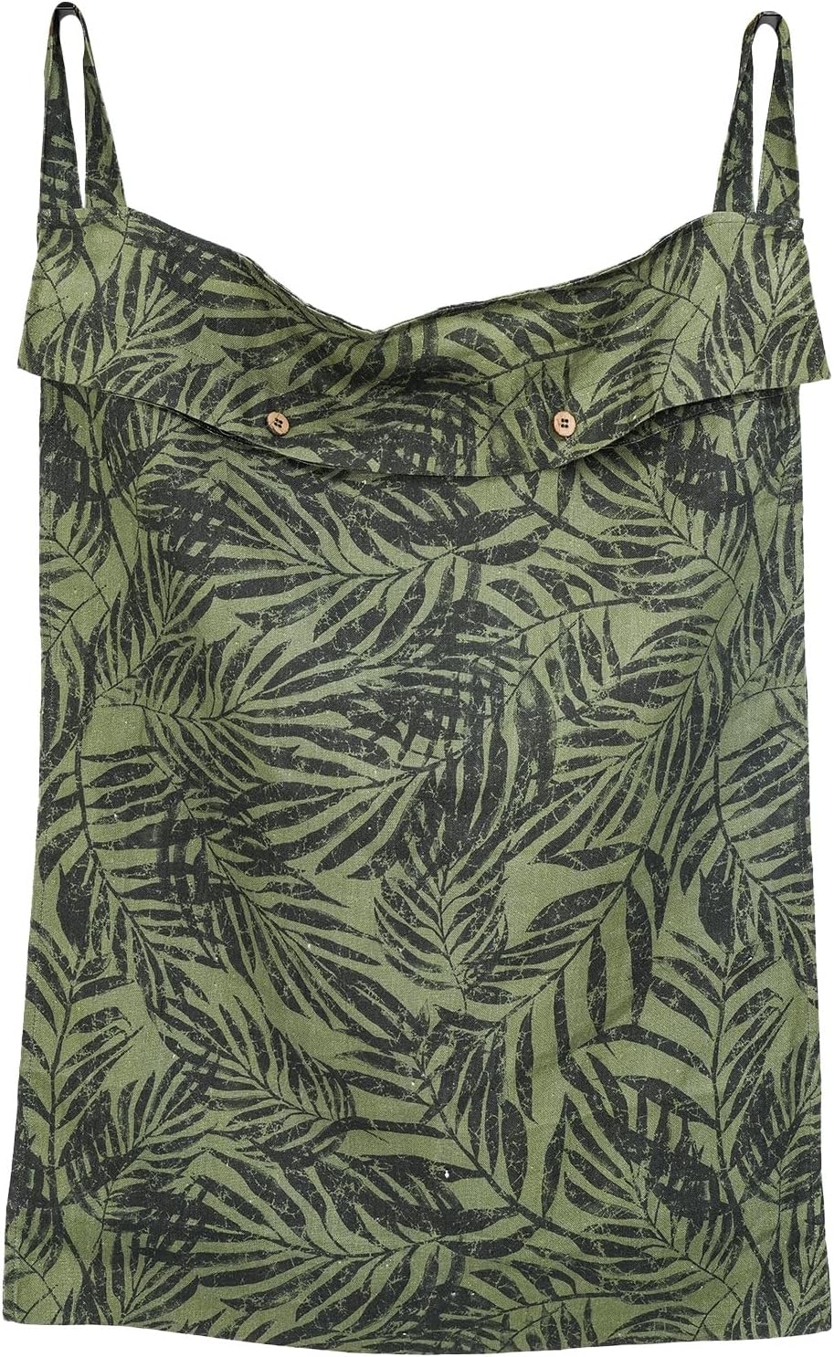 Linen Hanging Laundry Bag, 100% Linen Leaf Print Over The Door Laundry Hamper with Buttons and Zipper, Space Saving Door Hampers for Laundry Dirty Clothes Home Travel, Green, 19.7x27.5inches