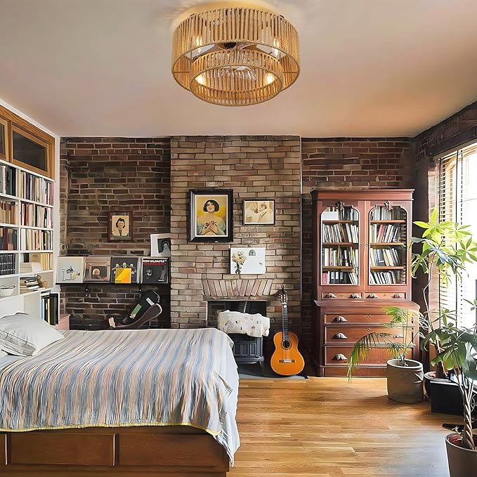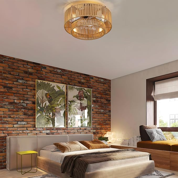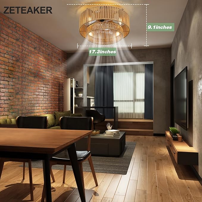 - UNIQUE DESIGN: Handcrafted with care, ZETEAKER boho ceiling Fan with lights features a unique rattan woven design that adds a touch of Bohemian charm to your space. Measuring 17.3 inches in length and 9.05 inches in height, flush mount design. Embrace the retro vibes and elevate your style, whether it's a trendy urban loft or a cozy modern farmhouse.