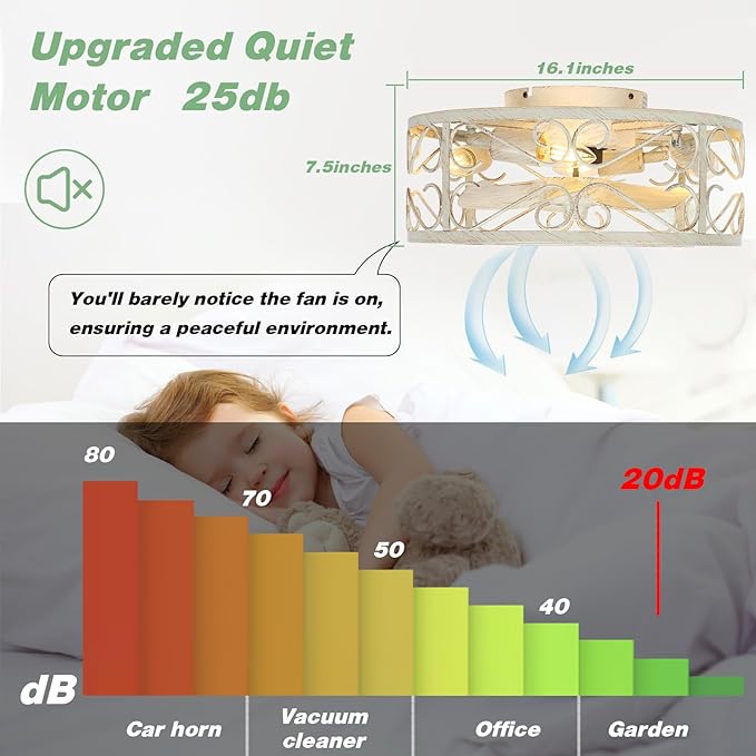 - COMFORT AND CONVENIENCE: Our farmhouse flush mount ceiling fans with lights and remote has 6 adjustable fan speeds, allowing you to choose the perfect airflow according to your preferences and needs. Whether you desire a gentle breeze or a more powerful airflow, our fan light can meet your requirements. Additionally, our product is equipped with a timer function, enabling you to set it to automatically turn off after 1, 2, or 4 hours.