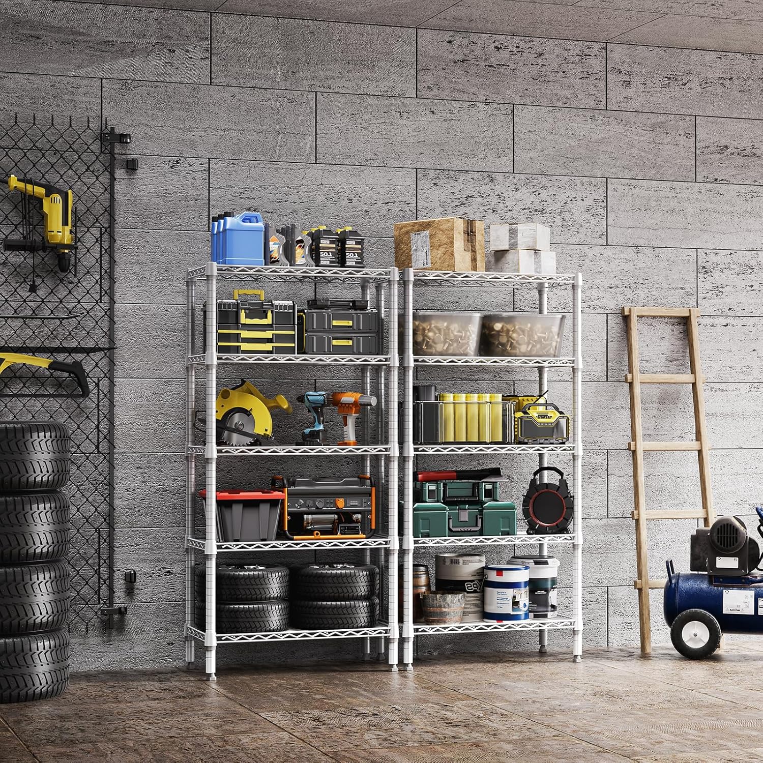 1250 lbs 5 Tier Shelf Metal Storage Shelves Wire Rack Closet Organizers for Garage Kitchen Bathroom Laundry White 11.8" D x 29.5" W x 59.5" H