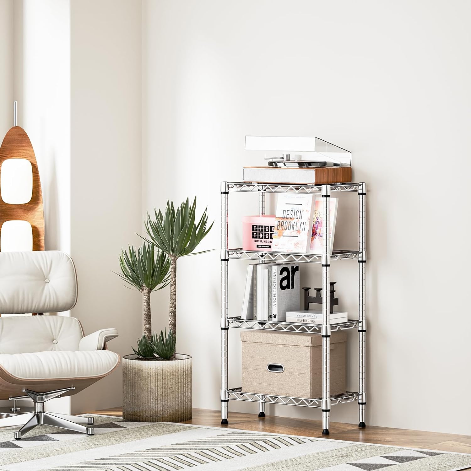 1000 lbs 4 Tier Shelf Metal Storage Shelves Wire Rack Closet Organizers with PP Board for Garage Kitchen Bathroom Laundry Chrome 11.8" D x 21.7" W x 39.5" H