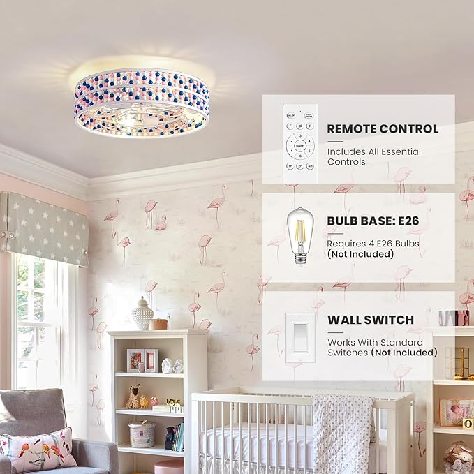 - Versatile Lighting: The fan requires 4 E12 base bulbs, offering compatibility with various bulb types, including LED, CFL, and incandescent (40W max). Its design ensures bright, ambient lighting suitable for living rooms, dining rooms, and other areas