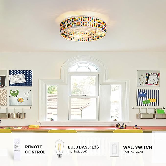 Moooni Colorful Wood Beaded Ceiling Fan with Light 19 inch Boho Wood Beaded Fandelier 6 Speed Flush Mount Ceiling Fan with Light Boho Fandelier
