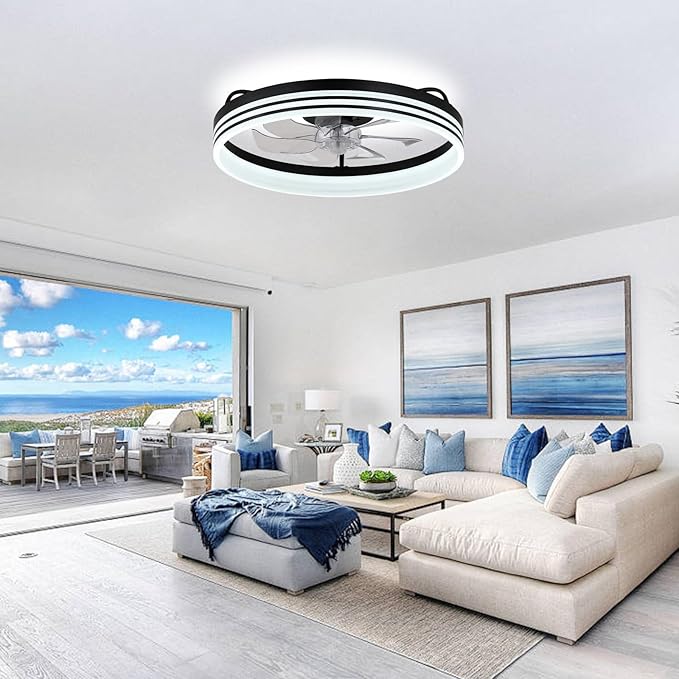 Modern Ceiling Fans with Lights and Remote,20 inch Low Profile Ceiling Fan with Light, Smart Flush Mount Ceiling Fans Chandelier for Bedroom Living Room (Black)
