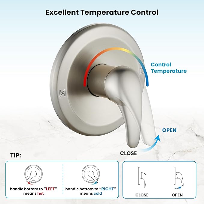 - 【Durability Material】:Brushed Nickel finish provides a modern look, premium metal materials ensure corrosion resistance and durability, ensuring durability and reliability. The valve body of this shower trim kit is made of copper, which is more solid.