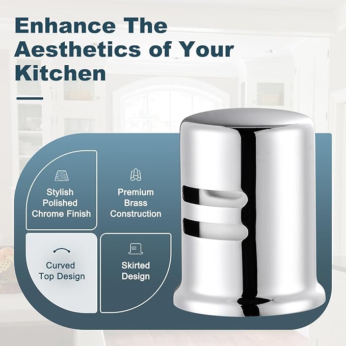 - Elegant and Stylish Design: Feature high-end chrome finish, the dishwasher air gap cover kit not only enhances the visual appeal of your kitchen, but also includes a curved top design that prevents water vapor buildup, reducing the risk of paint peeling and maintaining a flawless appearance over time.