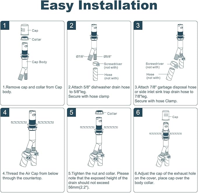 - Easy Installation: Enjoy a hassle-free installation process with the air gap kit. Designed for easy setup, it requires no special tools, allowing you to quickly and securely install it to your sink deck or countertop with minimal effort.