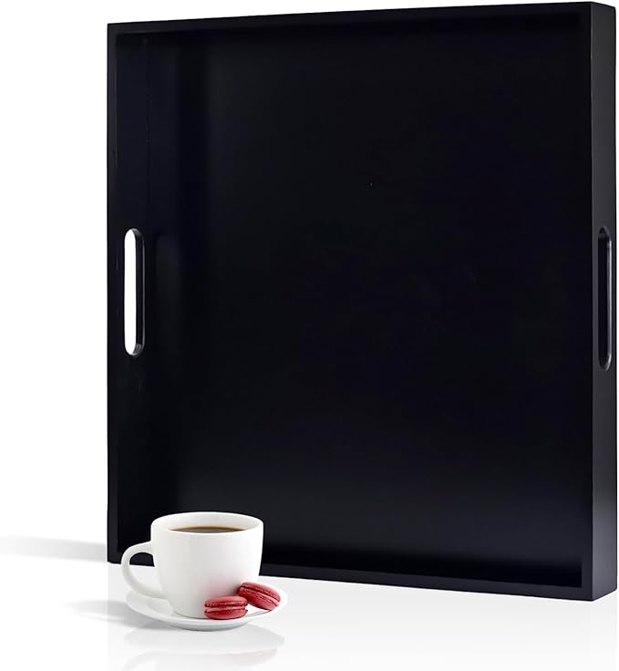 - SMOOTH ERGONOMIC HANDLES - Our square tray is designed with smooth, ergonomic handles for a comfortable grip. The cutout handles provide ample space, making it easy to carry items from one room to another.