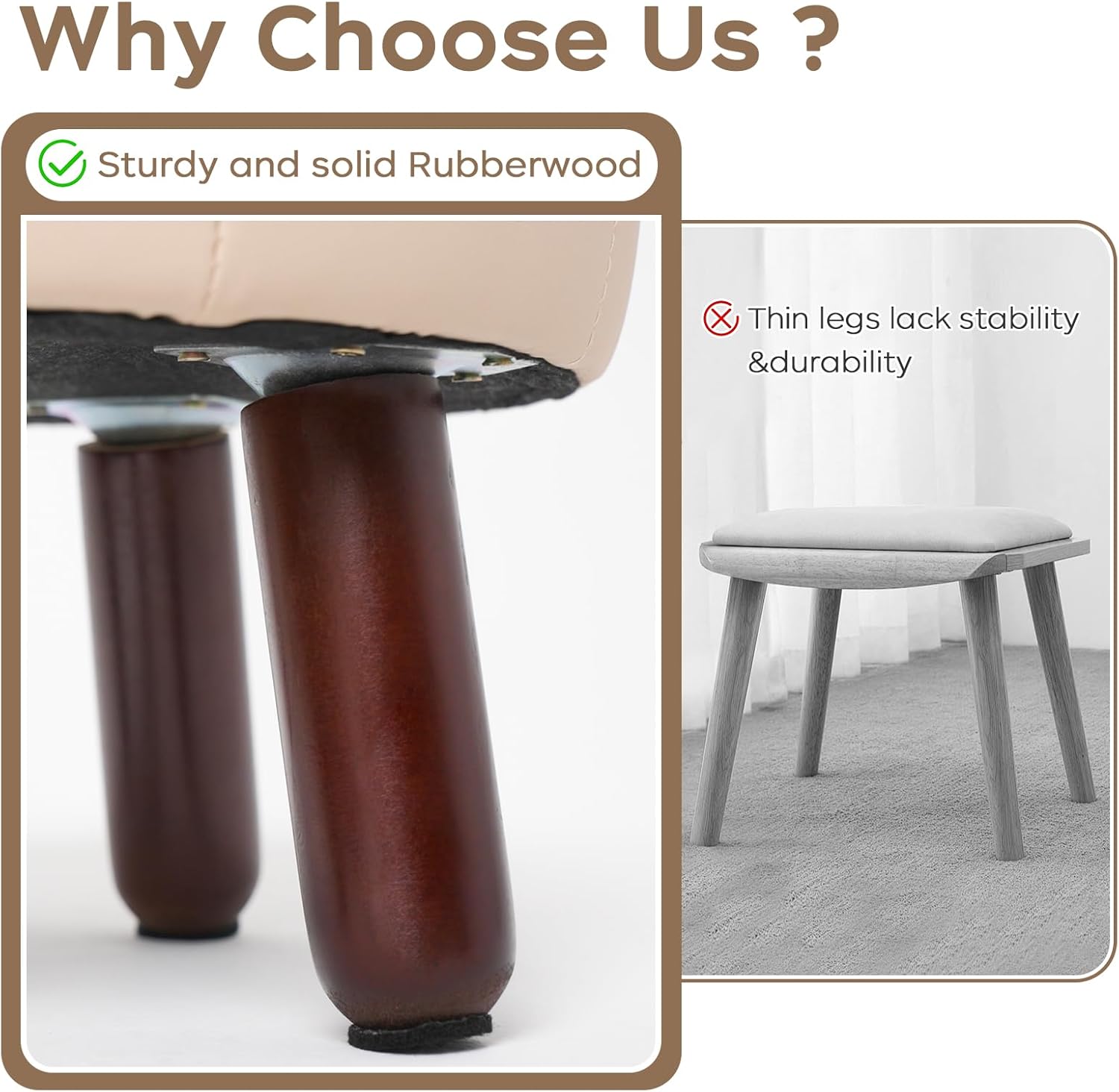 - 【Anti-Slip Design】- These leather foot stools small ottoman rubber legs come with dedicated felt pads to prevent scratches on floor and keep it from sliding.Wood leg with non-slip felt pad is quiet when moving, and can avoid leaving scratches on floor.The small footstool is perfect for small spaces and is compact enough not to get in anyone's way.
