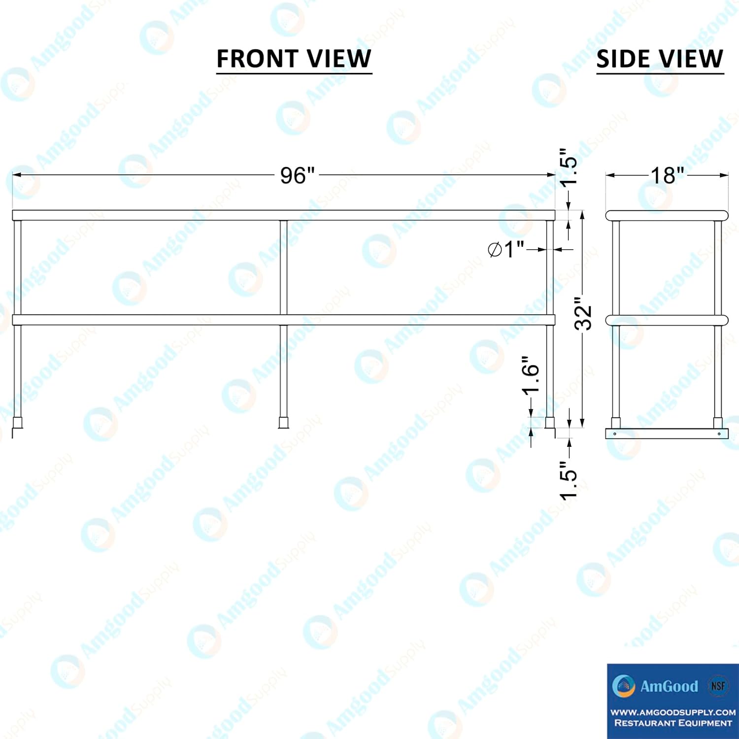AmGood Double OverShelf Stainless Steel NSF - Many (96" Long x 18" Deep)