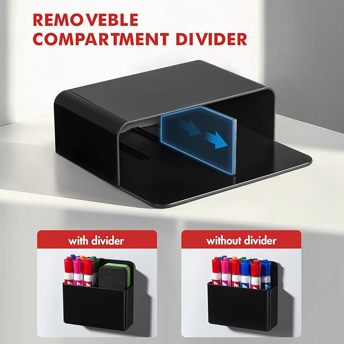 - 【50% INCREASE IN MAGNETIC FORCE】- Our pen holder uses a 1.5mm thick magnet, which has a 50% increase in magnetic force compared to a 1mm thick magnet. The magnet covers the entire back of the product, ensuring that the pen holder will not slide or fall off(Excluding markers and Whiteboard eraser)