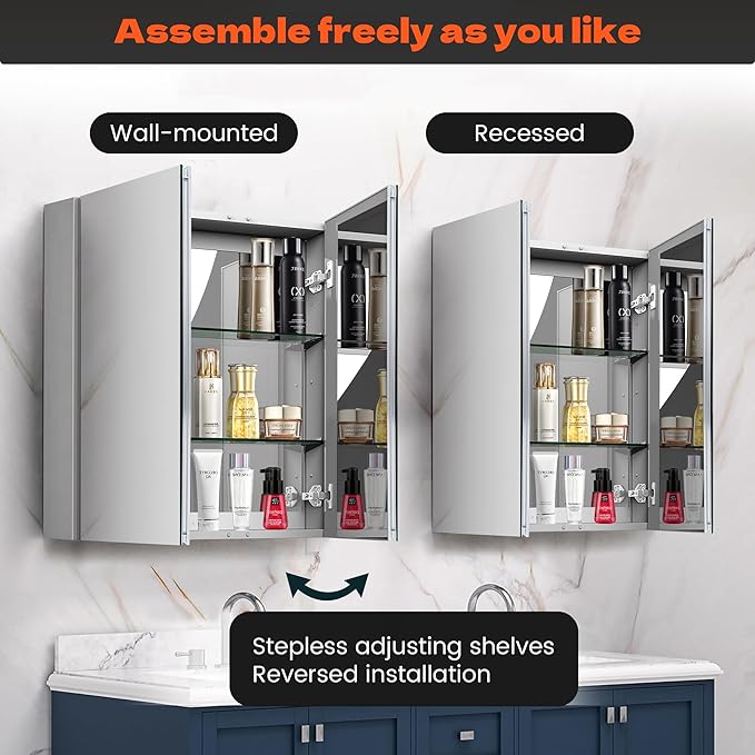- Medicine Cabinet Mirrored Interior - Featured with 2 mirrors, the surface of medicine cabinet can be used when washing face, shaving or putting on a make-up, providing a convenient place in your bathroom.