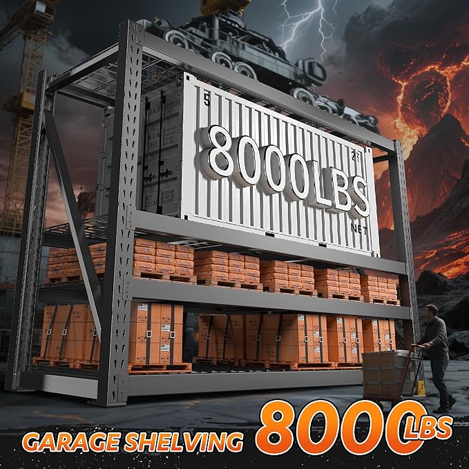 - 【8000 Pounds Weight Capacity Garage Shelving】Bepatio 77” W Storage Shelves has a total weight capacity of up to 8000 pounds, 4 extra support bars and side reinforcements for added stability. All storage needs for heavy items can be met. In addition, we ship our products in two packages