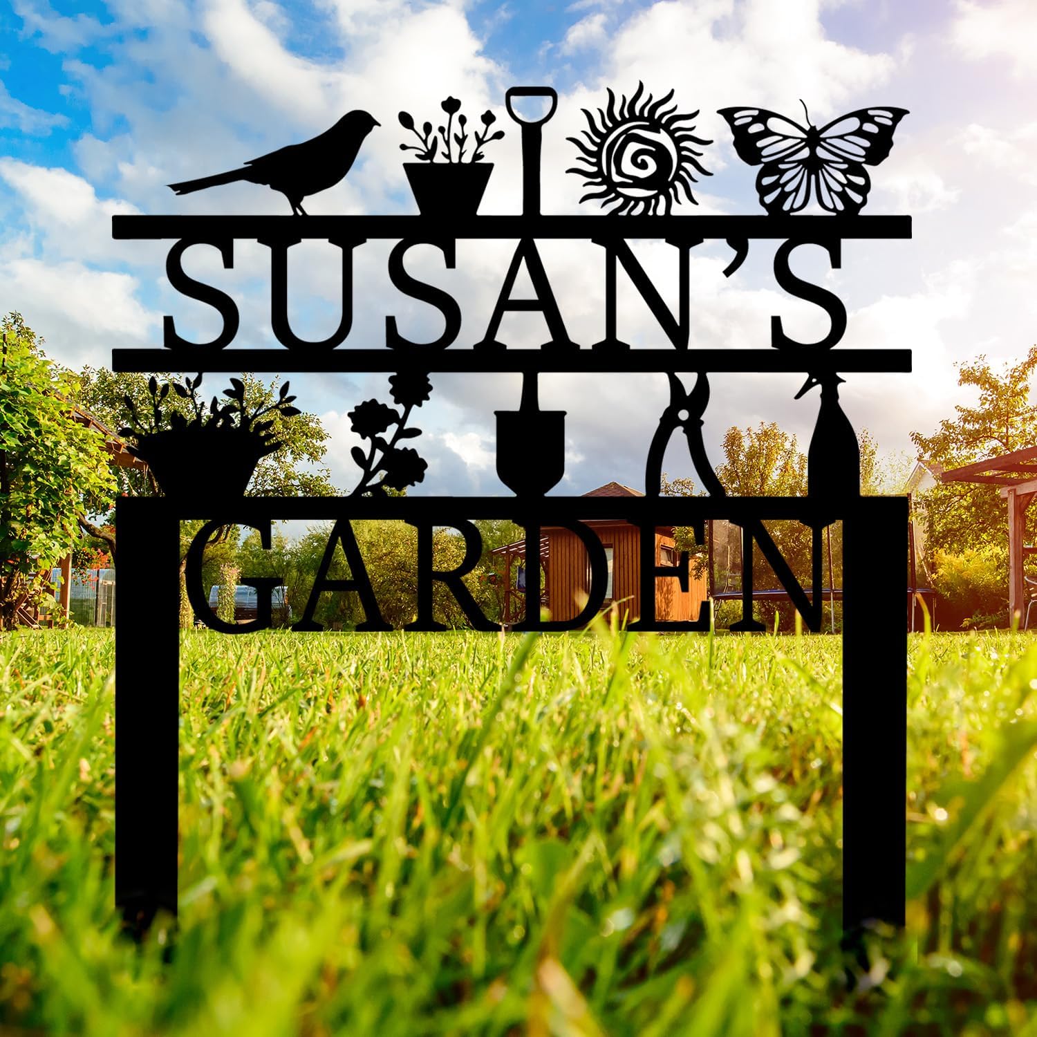 Personalized Garden Sign, Custom Garden Tools Sign with Stakes, Garden Sign with Last Name, Personalized Flower Garden Name Sign, Yard Sign, Lawn Sign, Custom Family Name Garden Sign, Farmhouse Decor