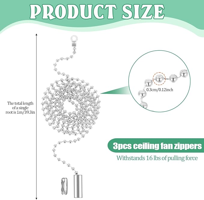 - 【Adjustable Length】very convenient ceiling fan pull chain dat can be customized to fit you're needs, just simply cut you're desired length of pull chain to install on another place. No additional tools or complicated steps required.