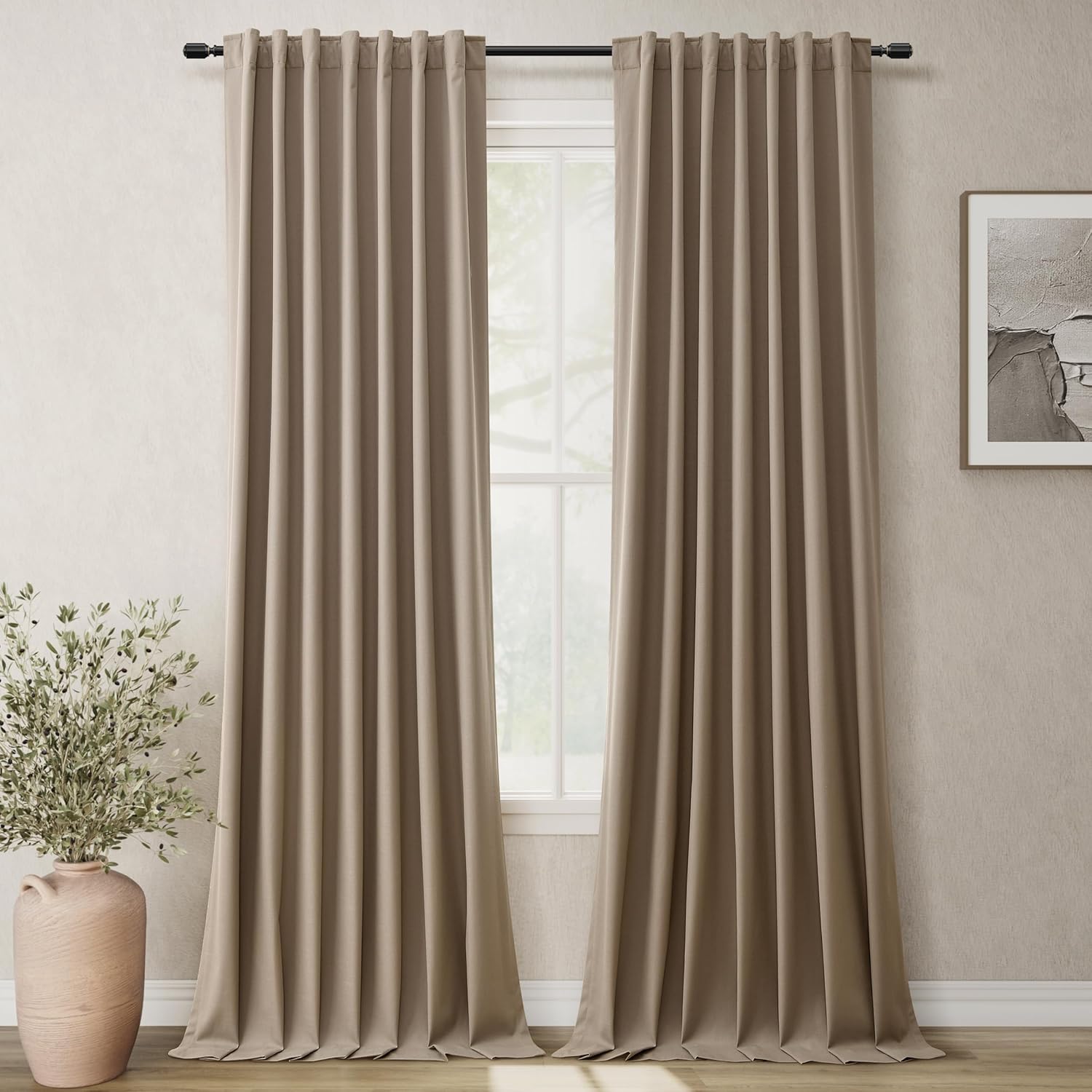 BOODII Room Darkening Curtains 120 Inch Back Tab Thermal Insulated Black Out Linen Drapes Extra Long Blackout Curtains for Patio Door Large Window Ceiling to Floor Light Blocking Light Brown 52x120