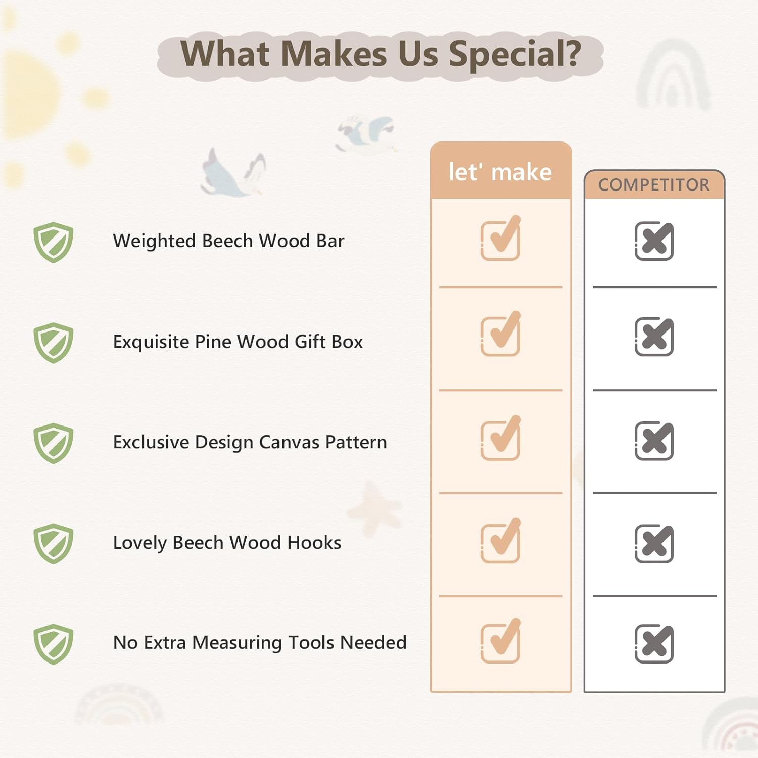 - ๐๐ช๐๐๐๐๐๐๐ ๐ซ๐๐๐๐๐ ๐ญ๐๐ ๐พ๐๐๐: Adorned With Hand-Painted Rainbow And Eucalyptus Designs On Durable, Waterproof Canvas, Matched With Rainbow/Bird Beechwood Hooks. The Soothing, Neutral Color Make Our Growth Chart Perfect Fits Both Little Boys And Girls Nursery Decor, Adding A Warm Touch To Your Home While Complementing Bohemian-Style Decor.