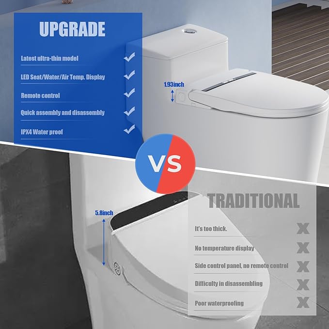 - User-Friendly Features: Effortlessly operate with the included remote control to personalize your experience. The LED night light enhances visibility during nighttime use, making it a top choice for a bidet compatible toilet seat.