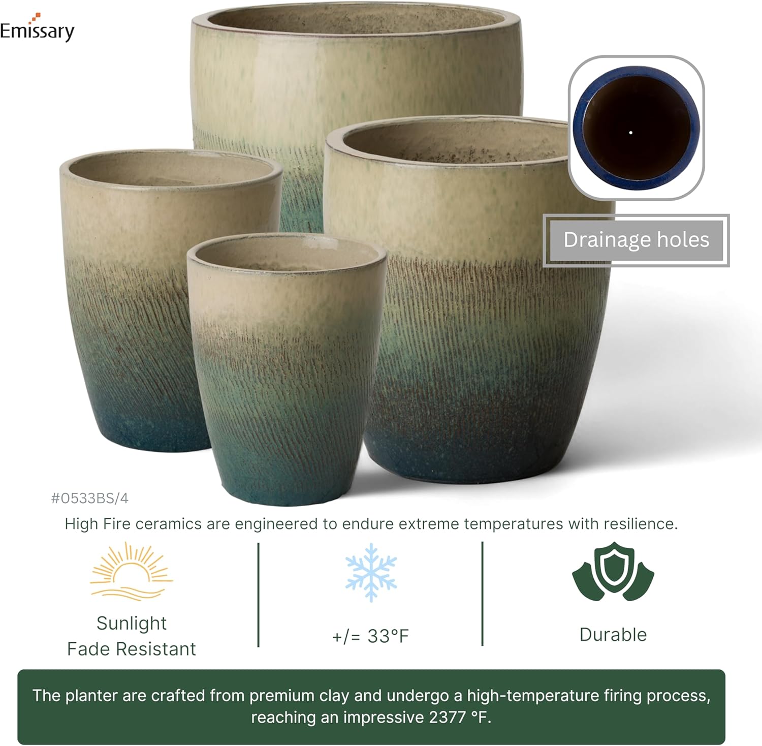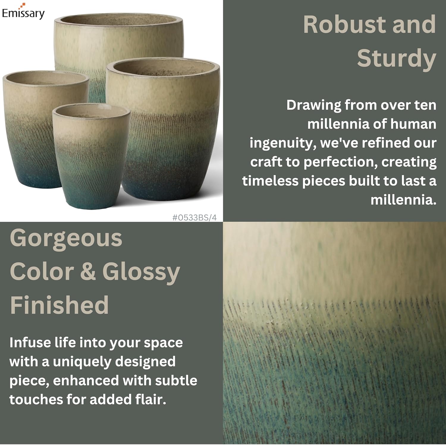 Emissary Home and Garden Bullet 12in., 14in., 15.5in., 21in. H Bayside Green Ceramic Round Planters with Drainage Hole (Set of 4)