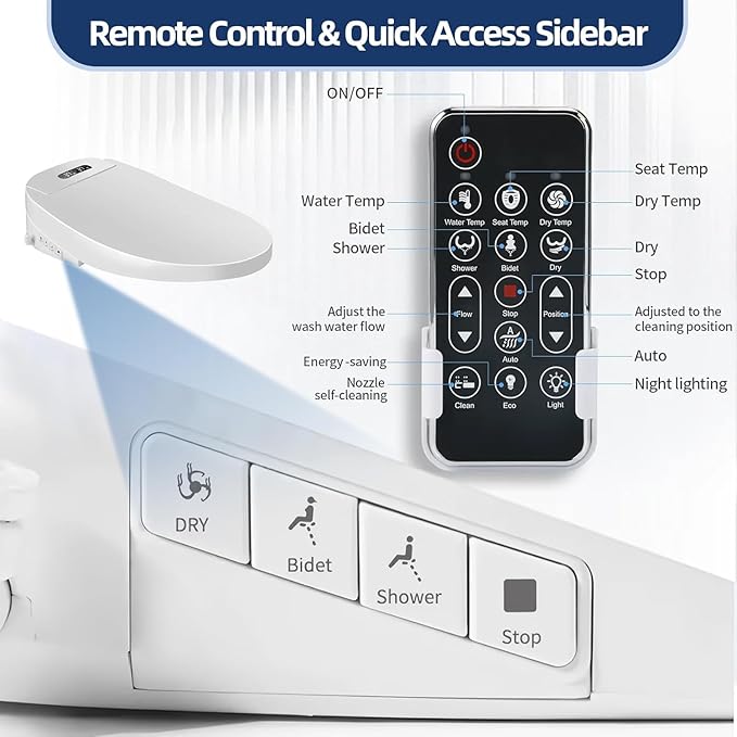 - VIDEC Smart Toilet Seat Provides Seat heated function with 4 levels adjustable temperature, built in LED Night Light to iluminate the bathroom environment.