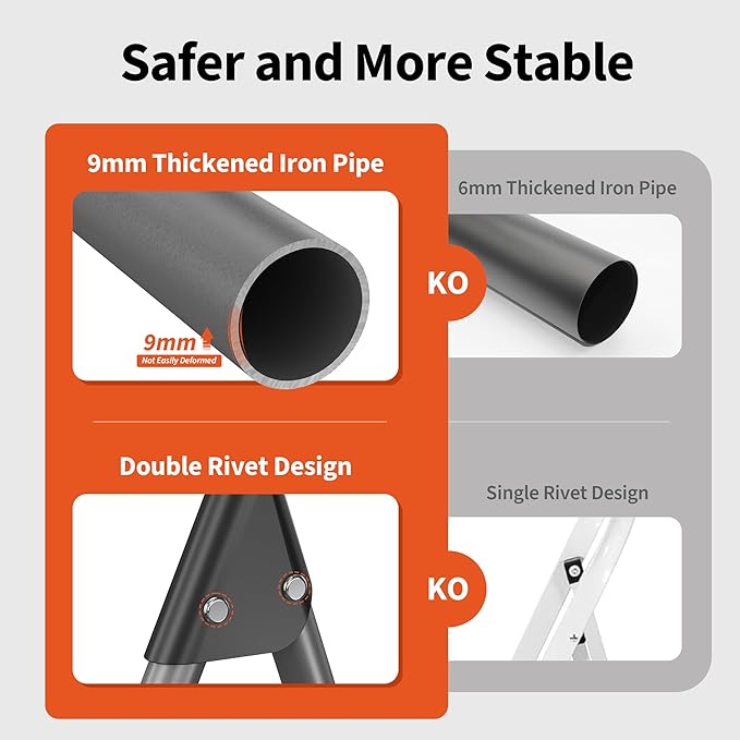 - 900lbs Sturdy Step Ladder: Featuring the strongest steel structure with tubes up to 0.9mm thick, this ladder has passed 17 reliability tests under ANSI+ASC+A14.11 standards. With a maximum load capacity of 900 lbs, it offers you exceptional safety and stability!